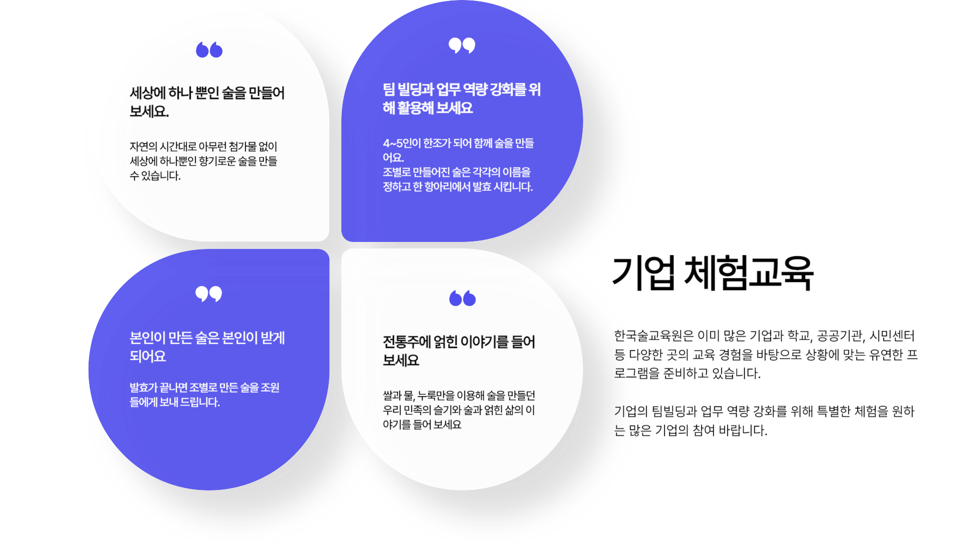 빚은 술은 교육원에서 발효를 시키고 술이 완성되면 회사로 보내 드립니다.